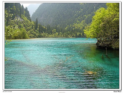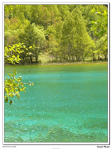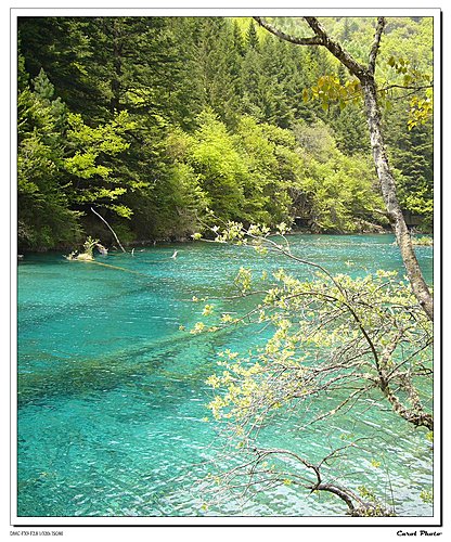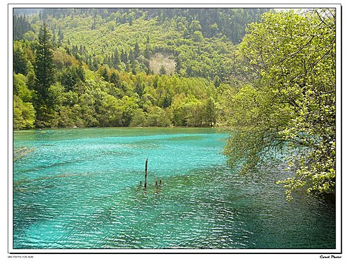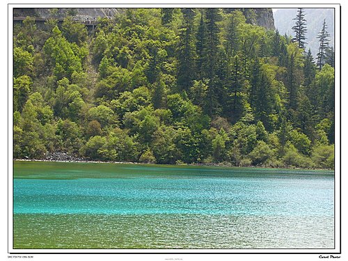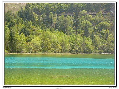 日則溝-五花海有九寨溝的靈魂之稱,因湖底的深淺程度和沈積木的不同,在陽光下會折射出現五花八門的色彩而得名。有“九寨溝一絕”和“九寨精華”之譽的五花海,位于日則溝孔雀河上游的盡頭。 我可是在這個海子逗留最久的時間,拍最多的照片,其實所有九寨溝海子的風景各有千秋,但是我個人獨獨鐘愛五花海,五花海的面積很大,因應著天氣的變化,樹蔭的影子,還有水中傾倒的樹木,只需要ㄧ個轉角,或是些許步路,你就可以看到完全不同的五花海,現在看到的是淡藍色的水面,往前幾步,可能又變成碧綠色,眼前鬱鬱蒼蒼的樹木,轉個彎,可能又是青翠的樹林,這些箇中變化,可能只有身歷其境的人能夠深刻的感受到吧!
