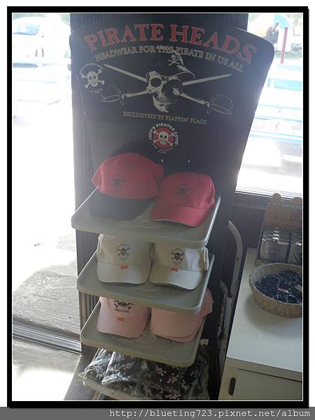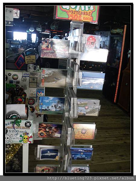 這間店分兩個部分,一個是紀念品販售區,就在一入門的地方,也有賣一些罐裝的飲料,如果沒有用餐的朋友,也可以到這裡買買水或飲料。紀念品主要是秀有海盜圖騰的相關商品,從馬克杯、衣服到帽子都有,但是品質沒有很好,除非是特別的打火機之類比較少看到的商品,不然,衣服帽子回台灣夜市買可能會買到更好的品質。