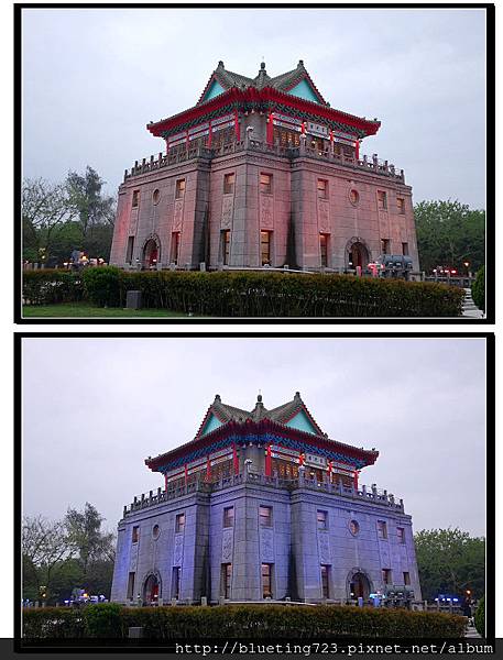 六點半在莒光樓周邊找個好位置坐定,天色不夠黑,燈光秀顯得有點弱,只能拍到微微變色的莒光樓。
