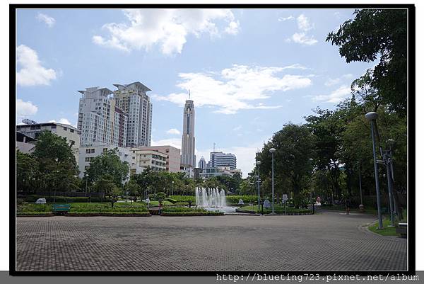 Royal View Resort對面是Santiphap Park和平公園,每天早上五點開放到晚上九點,出入口有警衛駐守,無論早晚都很熱鬧,早起可以看到晨運的民眾,中午經過會有不少人在公園午餐,晚上是人潮的巔峰期,很多人慢跑(曼谷也颳起路跑風)或是做體操土風舞等運動,接近九點十點,則是情侶聚集的高峰。平常日看起來普通的水池,在星期五六日三天,會有水舞表演,晚上還伴有雷射燈光,很炫麗,有的家庭與情侶會在晚間水舞表演前在水池周邊的座位區佔位置。幾乎往來BTS Victory Monument勝利紀念碑站時,都愛刻意穿越公園,感受曼谷公園的不同時段。
