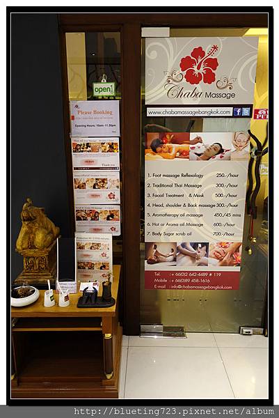 之後的幾天,陸續到Royal Chaba嘗試泰式按摩,與全身去角質+精油按摩。比起在清邁按過的Thai Massage,Royal Chaba的按摩有點普通,不是說不舒服,而是清邁的泰式按摩是床的上方有鐵桿,按摩的阿姨除了基本按摩外,也會幫客人折來折去(我超愛這形容的),最後會拉著鐵桿,站在客人背上施力踩踏,一趟下來真的非常舒筋活骨,但是Royal Chaba的泰式按摩,就是基本手技按摩與稍稍的折來折去,跟我想像的不同,雖然沒有舒筋活骨,但也是舒服啦!可能我對泰式按摩的期望值太高。