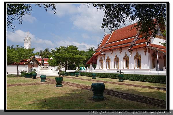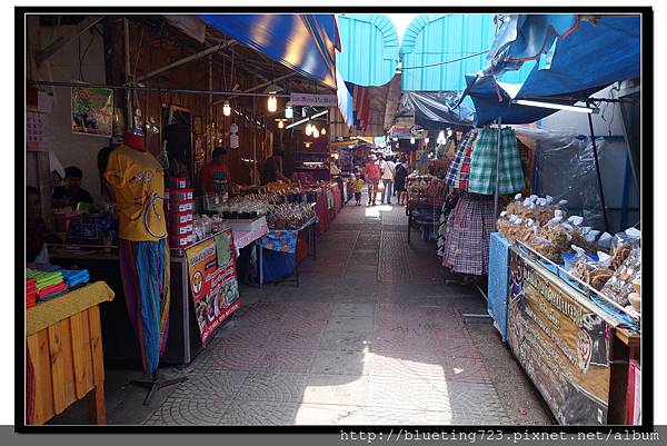 大叔不會英文,比手畫腳讓我們跟著他,更妙的是,途中經過警察,大叔竟然主動跟警察報告我們是坤呆丸,哈哈哈!結果警察先生還對我們微笑打了招呼。總之,大叔帶我們經過一間廟(如上圖),回台灣查資料,名稱是「Wat Amphawan」,直走後,會走到一個市場前方,大叔跟我們比了比直走,說是Amphawa,自己就開心的往反方向回家了,他應該是覺得自己做了一件好事吧!殊不知卻苦了我們。