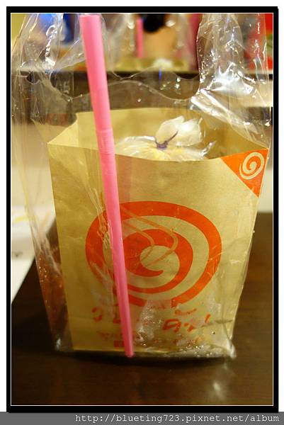 紙袋裝手搖杯(20-30泰銖),安帕瓦一文介紹過,紙袋裝手搖杯是泰國流行的飲料,其實只是把之前就有的塑膠袋裝汽水裝入紙袋中方便拿取而已,產品幾乎都是汽水系列,先開一瓶玻璃牛奶罐大小的汽水,倒入裝滿冰塊的塑膠袋內,再依據選擇的口味提供對應的糖漿倒入,搖一搖,完成!例如橘子汽水、奇異果汽水、草莓汽水等,就是色素糖漿汽水大集合,但很好喝,我們幾乎天天一袋,哈!