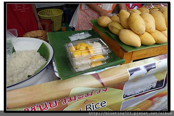 芒果糯米(50-100泰銖),這道甜點應該可以排上觀光客必嘗之一,路邊攤與百貨公司美食街都有,但價格差一倍。當然,有時候價格的差異取決於大小份。