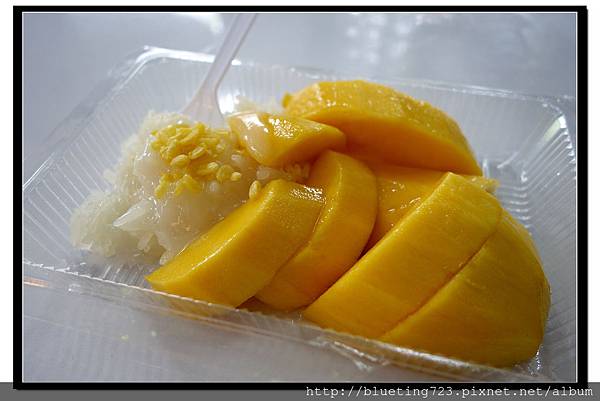 個人覺得泰國的芒果甜度輸台灣,但香氣濃厚,搭配淋上煉乳的甜糯米,意外的合拍,建議兩人吃一份,因為非常有飽足感。