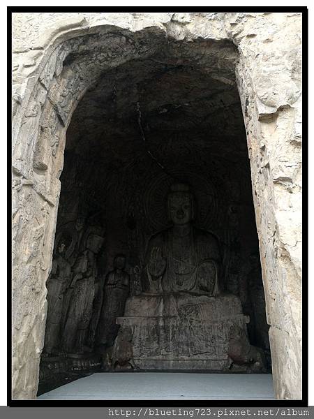 行前查找資料,了解龍門石窟主要精彩的洞窟是在西山,而上午太陽從東邊出來,曬得到洞窟,參觀起來比較清楚漂亮。如果是下午參觀石窟又遇陰雨天,部分洞窟內的視線不佳,看進去黑漆漆一片。所以我將龍門石窟安排在一早的第一個景點,也考量休息一天後,老人家的體力在早上會比較好(笑)。我們在龍門石窟只待了上半天,整體而言不需要帶手電筒也能好好地欣賞每一座石窟。