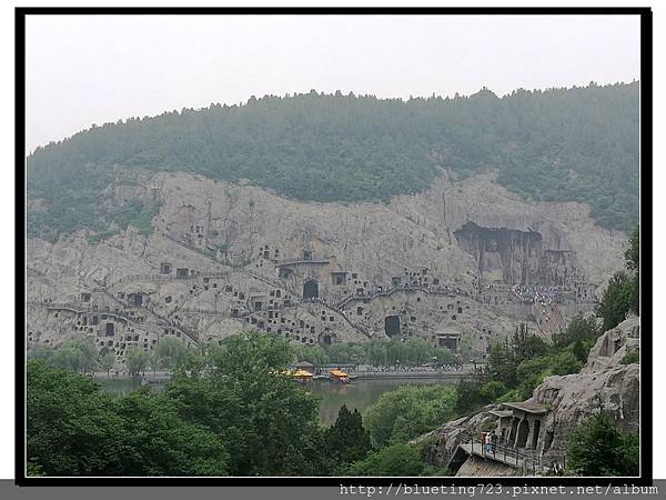 河南洛陽龍門石窟位於洛陽市東南,分佈于伊水兩岸的崖壁上,南北長達1公里。龍門石窟始鑿於北魏年間,先後營造400多年。現存窟龕2300多個,雕像10萬餘尊,是中國古代雕刻藝術的典範之作。與一般團體旅遊的順序一樣,我們從北門進入後單向瀏覽:東山石窟→西山石窟→香山寺→白園。最後可以搭電瓶車回西門或是直接出白園,我們選擇後者。