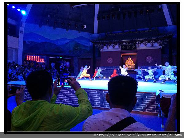 武術表演約半小時,串場串的很好,近距離的演出,真材實料,舞刀弄棍,拳腳功夫,都是扎實苦練而來。即便每一種表演都只有一小段,但每一段都值得喝采。半小時表演之後,就是互動與銷售時間,會在現場選觀眾上台互動,順便推銷少林寺自己出版的武術表演光碟,當天還有主持人口中的「書法大師」現場揮毫競標,大概在這時候,群眾就陸續退場了。雖說排隊與入場的情況讓人無語,但還是推薦大家到少林寺務必來看武術表演,算是一覽動態版的少林文化展演。