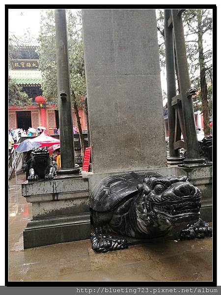 之後看了「立雪亭」又名達摩亭,相傳是禪宗二祖慧可向初祖達摩求法之地。亭長 11.37 米、寬 7.39 米、高 8 . 829 米,面闊 3 間、進深 3 間,單檐廡殿頂,石柱上有明代題字,殿內懸乾隆帝題「雪印心珠」橫匾,佛龕內供達摩銅像。東間有明萬曆十七年( 1589 年)的銅鐘一口。