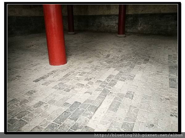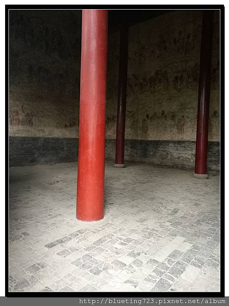 「千佛殿」又名毗盧殿、毗盧閣,重建於明代,供奉毗盧佛像,面闊 7 間,硬山式建築,是寺內現存最大殿宇。北壁及東、西兩壁,繪「五百羅漢朝毗盧」大型壁畫,壁畫高 7.5 米,長 42 米。殿內地面有 48 個 20 厘米深的陷坑,是清代少林武僧練拳習武的腳坑遺址。小時候看不少跟少林武功相關的影視作品,練功練到讓牆壁地板凹陷,我以為是電影的誇飾法,沒想到是確確實實發生的事情,親眼所及,令人感到震撼。