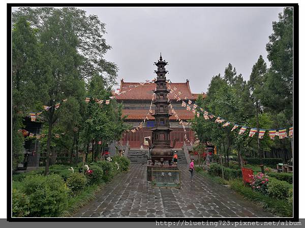 少林寺建築群主要包括常住院、塔林和初祖庵等。常住院的建築沿中軸線自南向北依次是山門、天王殿、大雄寶殿、藏經閣(法堂)、方丈院、立雪亭、千佛殿。另外,寺西有塔林,北有初祖庵、達摩洞、甘露台,西南有二祖庵,東北有廣慧庵。寺周還有同光禪師塔、法如禪師塔和法華禪師塔等古塔 10 餘座,古碑多品。真要認真逛起來,可以逛上大半天,但我們遇到下雨天,還順帶一陣一陣的暴雨,實在很難好好地走完每一區,再加上老人家感到疲憊,所以我們只有走完常住院這區。