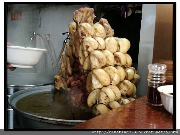 與馬傑山牛肉湯一樣,櫃台結帳後會給牌子,拿牌子去窗口取餐。一走到窗口,就看到翻滾濃湯的大口湯鍋以及一旁堆積起的牛大骨山,因為窗口離湯鍋很近,就順手拍下這一張照片。看著滾燙的白色濃湯,還沒吃到米線就覺得期待值破表。