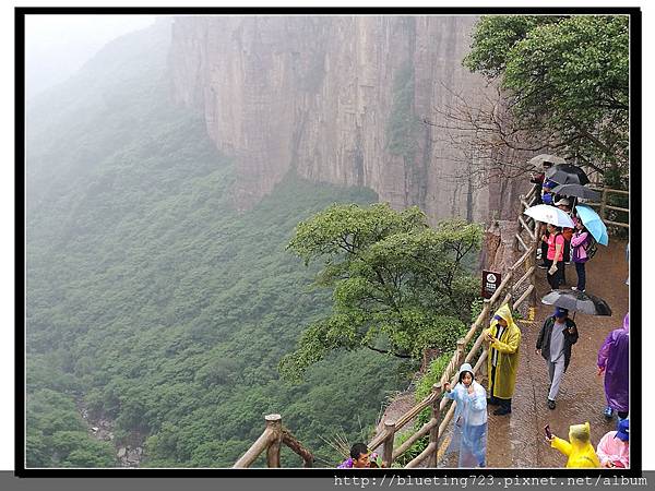 走在高處的絕壁!?懸崖!?所以往遠方看去的景致非常開闊,視野極佳,雲霧飄渺的山巒帶有仙氣,像畫一般的風景。只是走了15分鐘,還是沒有看到絕壁長廊,甚至連出口模樣的感覺都沒有,一度懷疑是不是走錯,但沿路都沒有岔路,要走錯也難。還沒等來出口,先等來查票員。沒多久遇到對向來的村民,問了路,說是繼續走就會到絕壁長廊,接著向我們查票!!!沒錯,對方不是村民,而是查票員。