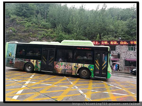 從日月星石搭車往景區停車場時,遇到一些插曲。接近中午時間,遊客變多,景區交通車每一班都是停妥開門馬上就客滿,大家坐在車內,卻遲遲不發車,乘客開始鼓譟,罵司機,司機無奈地說他要依據站點工作人員指示才能發車,然後乘客開始不耐煩用更難聽的字眼罵司機,司機也暴怒回嗆,是我們一家人都看傻眼的程度,最後罵司機罵最兇的幾位乘客怒氣沖沖的下車說不搭了,下車前還大聲鼓吹其他乘客一起下車拒搭,但車上沒有人動作(即便剛剛跟著一起罵的人)。