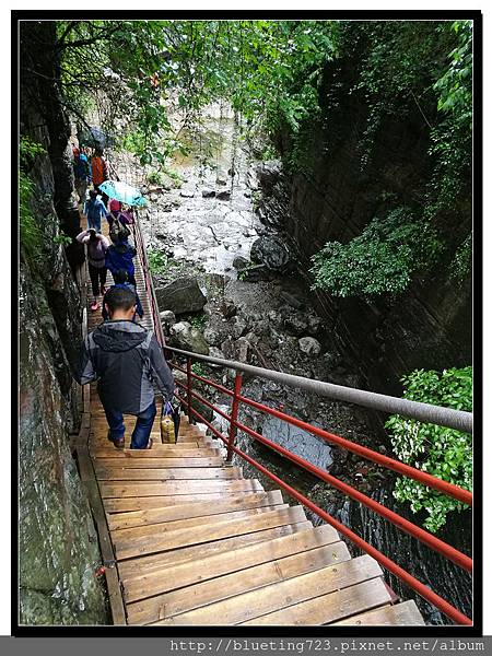 離開黑龍潭瀑布,繼續往下走,順水順河谷前進,沿途看到不少人氣喘吁吁地往上走。我們偷吃步花錢從上往下走,雖說路程危險但真的輕鬆很多。越靠近出口(日月星石),步道旁的商家開始變多,主要販售小吃與紀念品。順道提醒一下,從上往下,靠近商家這邊才有一個公共廁所,沿途都沒有喔!如果膀胱不是很有力的朋友,記得排空再上路,哈!